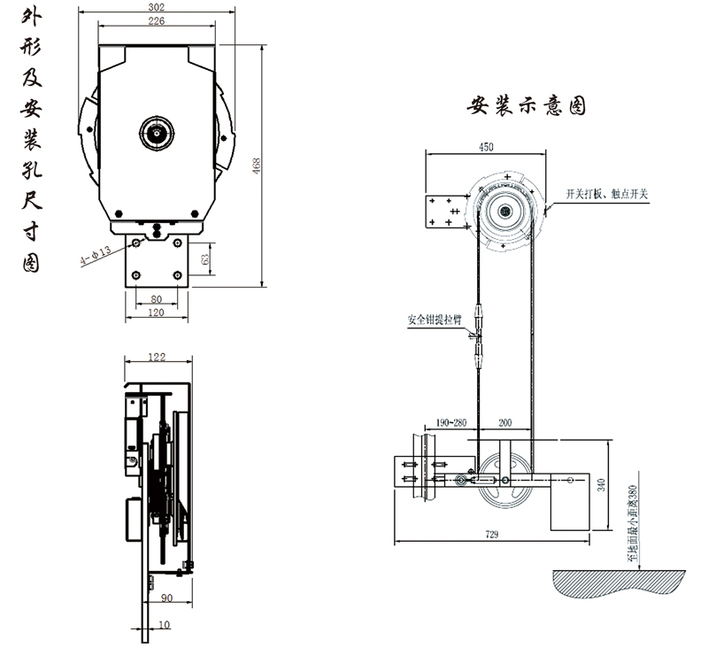 4、繩輪節(jié)圓直徑:Φ200mm